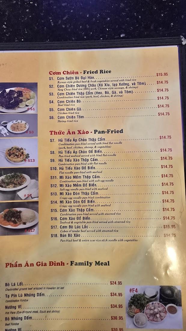 The restaurant features a soothing interior complete with a beautiful aquarium, contributing to a serene dining experience. Our combination hot pans and family meals highlight local favorites with marinated eye-of-round steak, squid, and shrimp that promise a festive shared meal. At Pho Hung, we foster a welcoming environment where the love of Vietnamese food builds friendships and community ties. Call us at +1 817-831-9888 to book a reservation or order your favorite dishes for pickup or delivery.